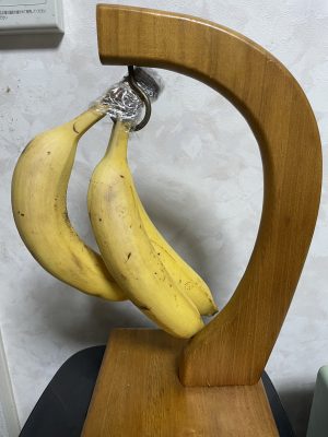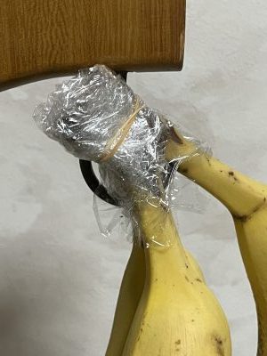 バナナを長持ちさせたい時には、房の接合部分にラップを巻いて吊るしてください。
