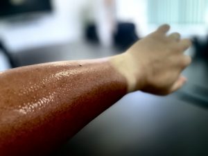 安ちゃんです。 草むしりで日焼けしました。 自作のアロエ入りクリームを塗り、瞬時に痛みもなくなりました。 時計と軍手で白い部分が残ってしまいました。 気持ち悪い写真ですみません。。。