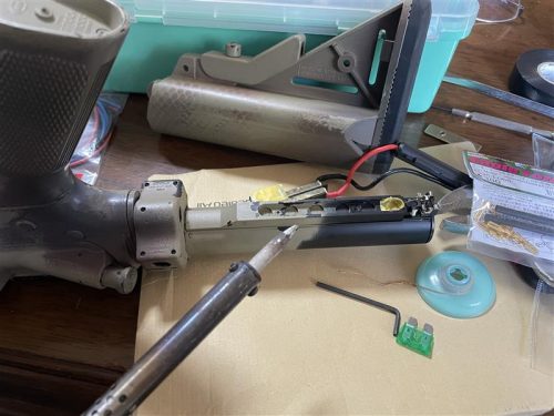 眠れない夜、電動ガンのモーターとバッテリーを直結して高電流を流しパワーアップする作業をしました。