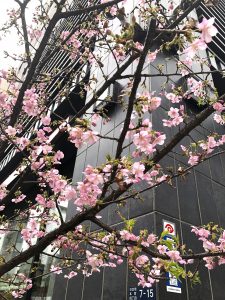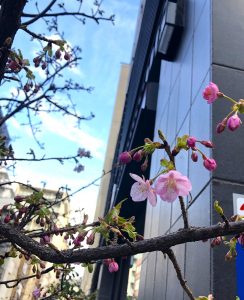 オフィス前の通りの桜といえば、早咲きのオカメザクラの並木ですが